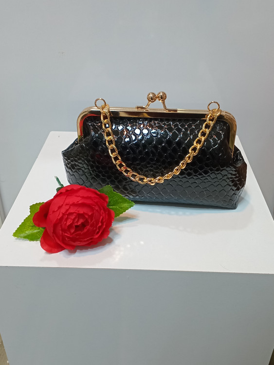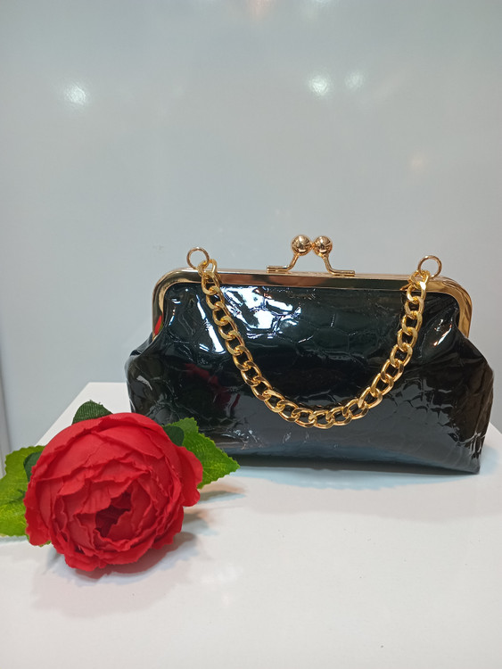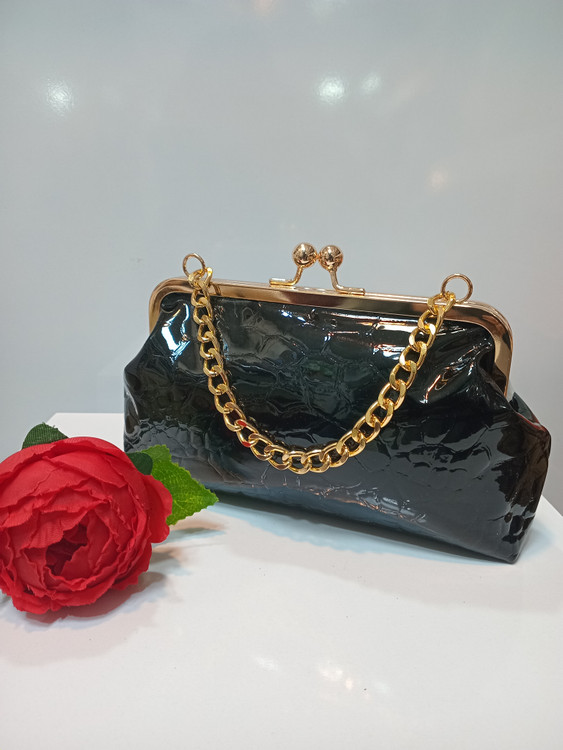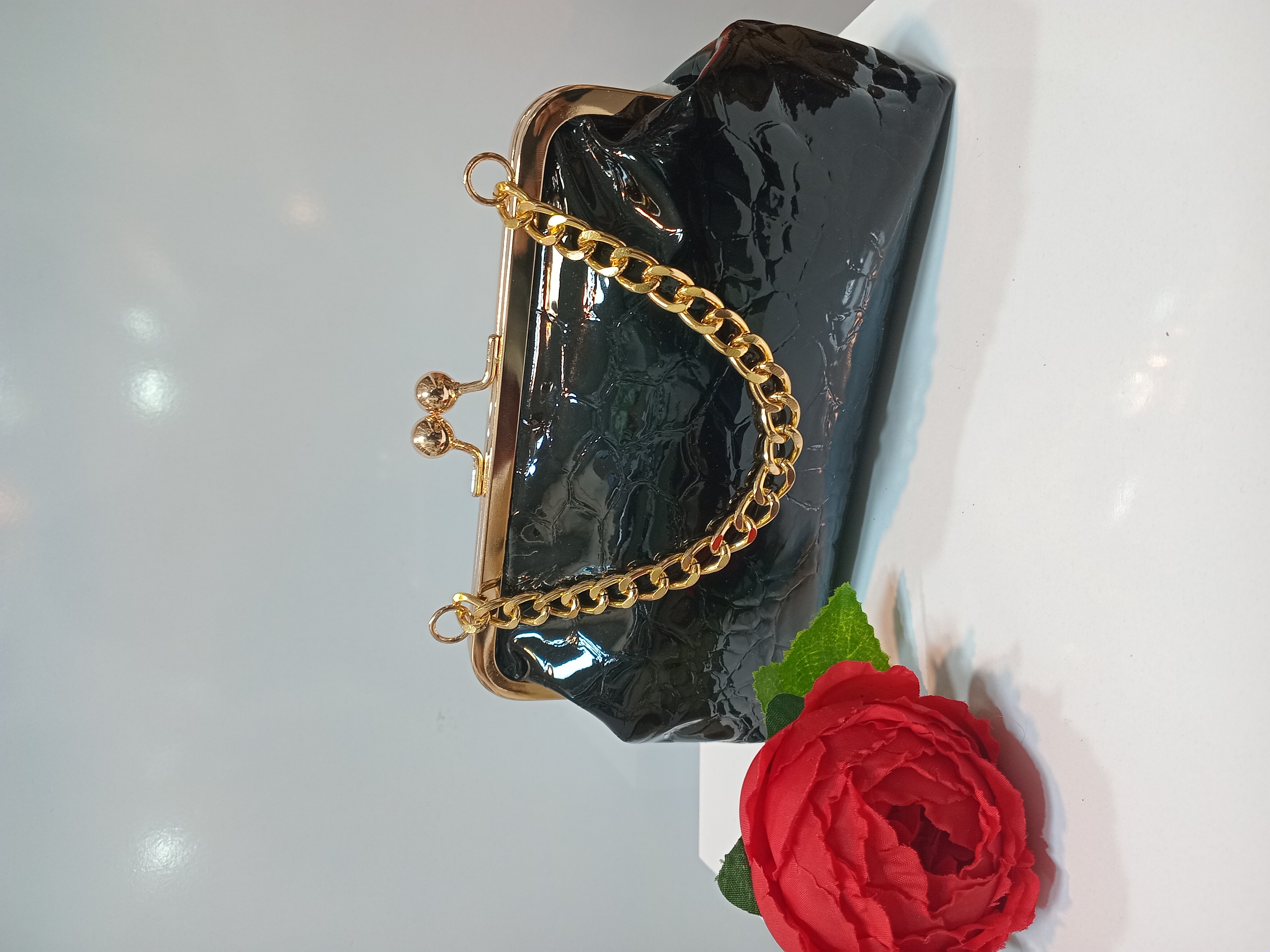 کیف مجلسی زنانه منگو طرح سنگی و ساده شاین دار - با زنجیر دوشی طلایی و کیفیت تضمینی